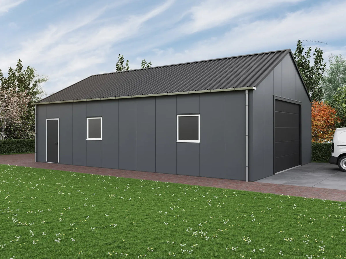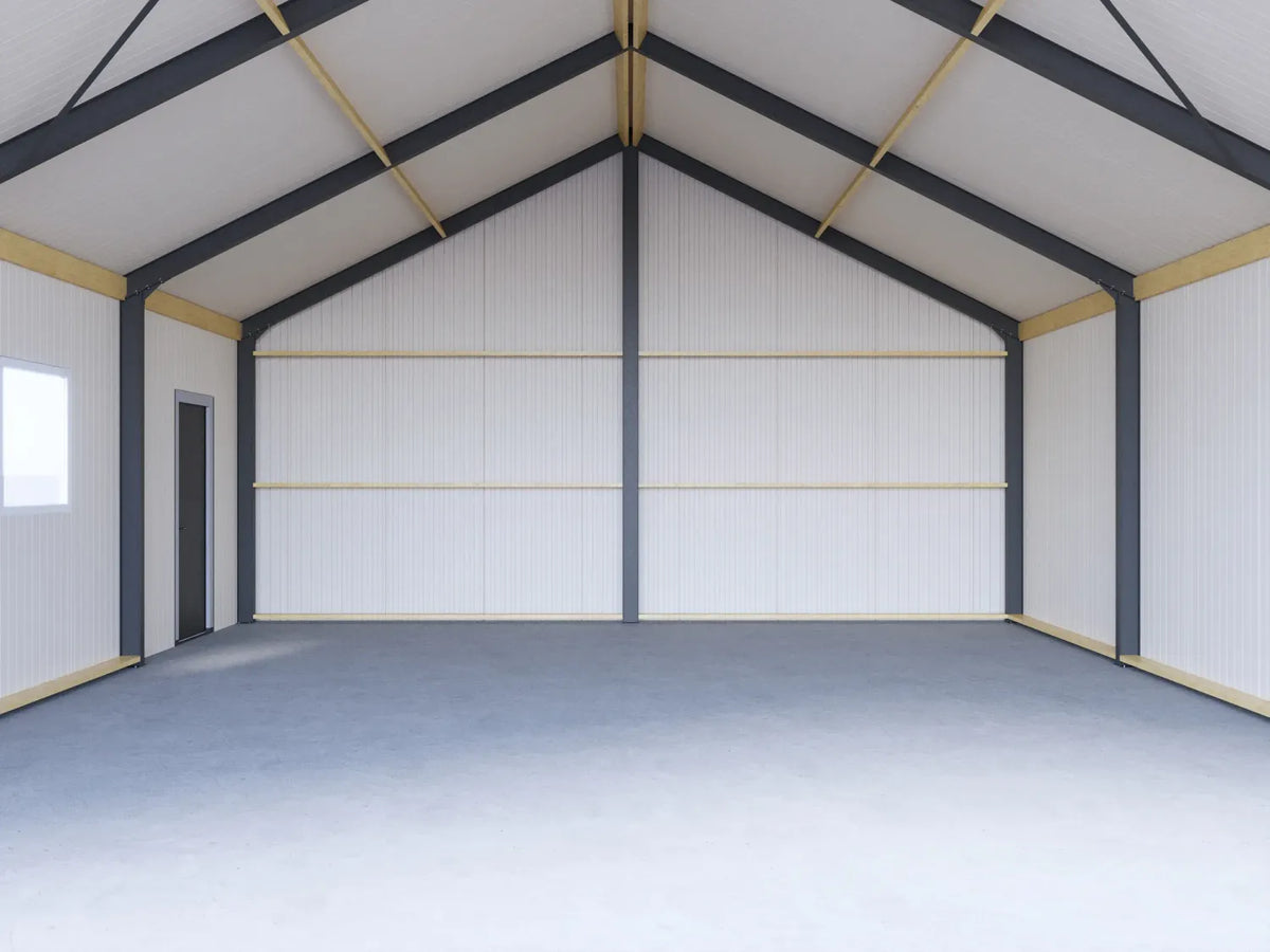 Hetgeen dat de schuren van Prefabschuur.nl uniek maakt zijn de stalen spanten. Dit biedt een extra stevige constructie die de schuur erg duurzaam en geschikt tegen intensief gebruik maakt. De wanden en het dak zijn gemaakt van sandwichpanelen, die zorgen voor uitstekende isolatie. Hierdoor blijft de temperatuur binnen aangenaam, wat de schuur geschikt maakt voor een breed scala aan toepassingen. Wilt u de kwaliteit van het materiaal in het echt bekijken? Neem dan contact op met ons op voor een afspraak.